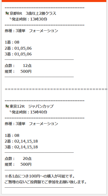 11月最終日の無料予想で