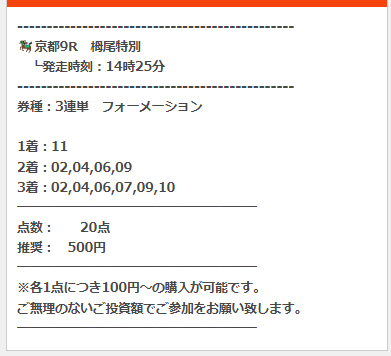 堅い決着でも買い目点数少なくてトリガミしない無料予想なら満足でした!